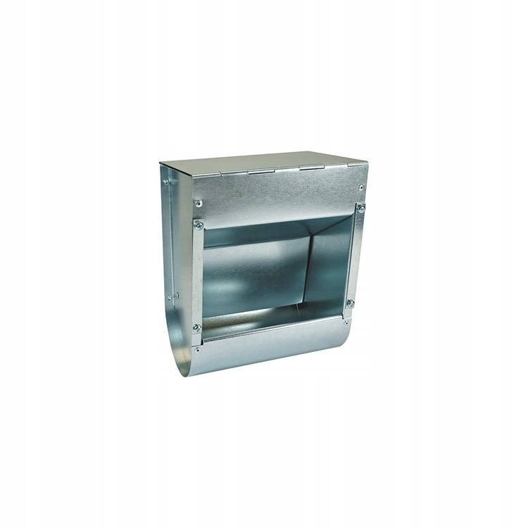 Wykonane z wysokiej jakości blachy ocynkowanej karmidło zasypowe można zamontować na zewnątrz klatki (np. na drzwiczkach) za pomocą załączonych uchwytów. Przymocowana na zawiasie skośna pokrywka zapobiega zabrudzeniu lub zamoknięciu pokarmu. Pokrywka zasobnika otwierana jest na klatkę do pozycji pionowej.