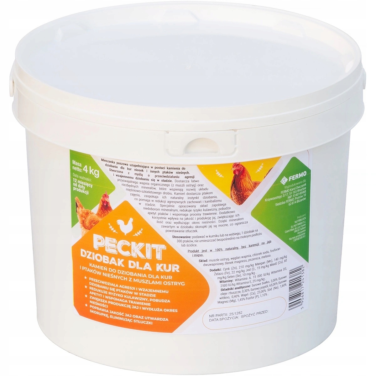 Peckit to wysokiej jakości blok mineralno-witaminowy (tzw. dziobak) przeznaczony dla kur niosek, brojlerów, bażantów oraz innych ptaków ozdobnych.