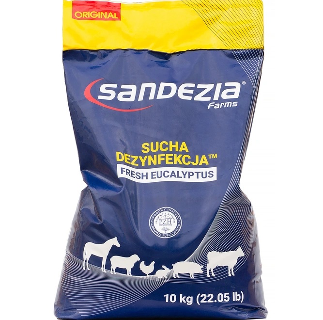 SANDEZIA SUCHA DEZYNFEKCJA to preparat do dezynfekcji klatek hodowlanych i budynków inwentarskich. Produkt skutecznie zwalcza bakterie, wirusy, pasożyty i grzyby. Niszczy stadia larwalne much i innych owadów znacząco redukując ich liczbę.