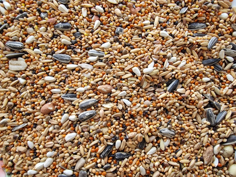 białe proso 3%, słonecznik biały 3%, siemię lniane 2,5%, ryż paddy 1,5%,